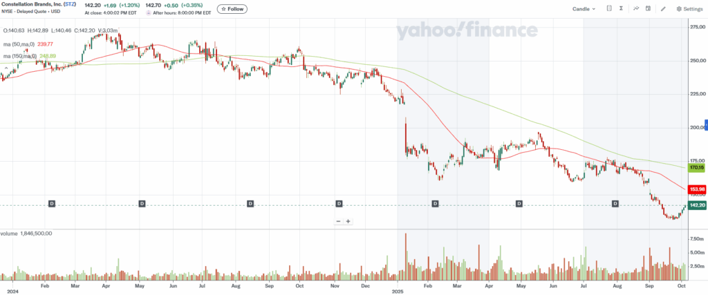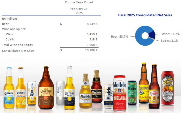 Constellation Brands は、米国を拠点とする大手飲料メーカーで、ビール・ワイン・スピリッツの製造・販売 を手掛けています。代表的なブランドには、メキシコ産プレミアムビール「コロナ」「モデロ」、ワイン「Robert Mondavi」、スピリッツ「Svedka」などがあります。